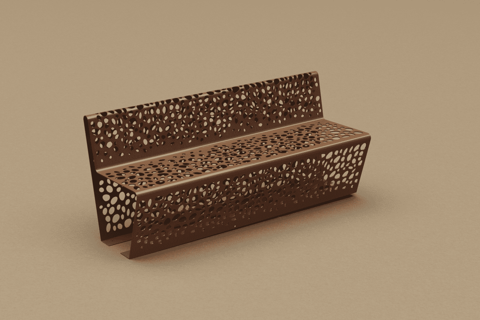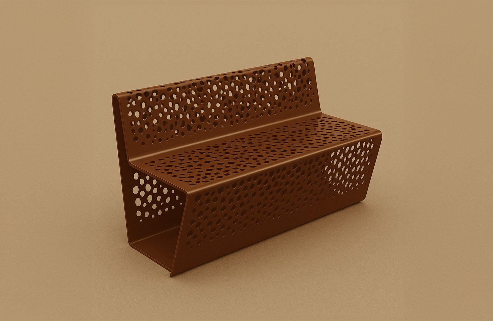 The MISTRAL bench is a contemporary masterpiece featuring precision laser-cut steel panels with intricate geometric patterns. Inspired by the interplay of light and shadow, this bench combines industrial precision with artistic elegance through its meticulously cut steel surfaces. The design creates captivating moiré effects as sunlight filters through the patterned metal, offering ever-changing visual interest throughout the day.