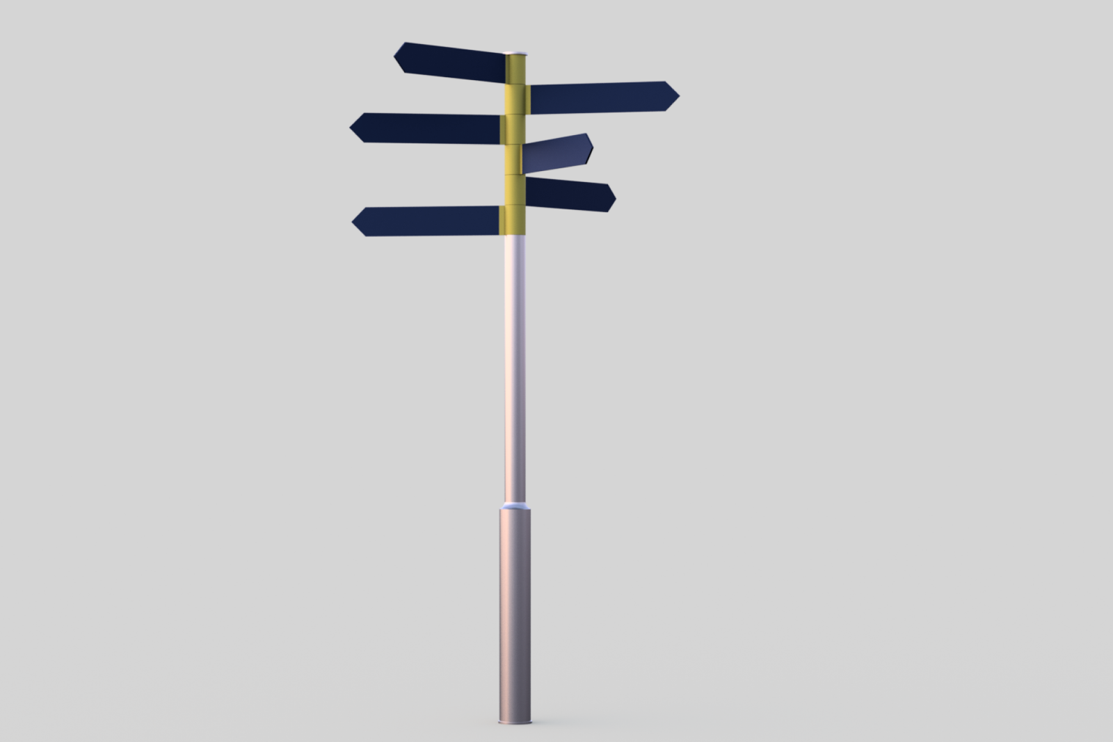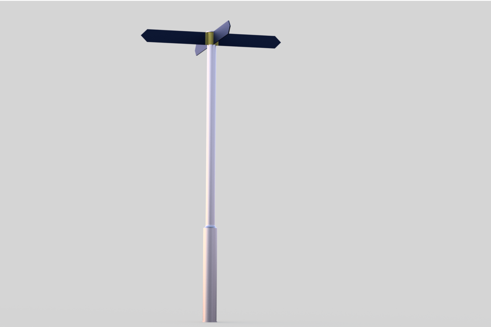 The TARIQ Directional Pole reimagines traditional wayfinding with its modular, multi-panel design, offering unparalleled flexibility in guiding pedestrians through complex environments. Inspired by celestial navigation principles, its circular hollow pipe structure provides 360° visibility, while the scalable arrow panel system allows for adaptive information display – from simple directional cues to comprehensive site maps.