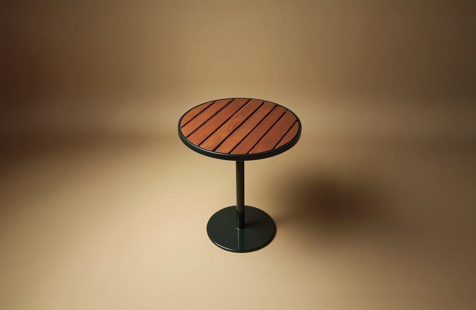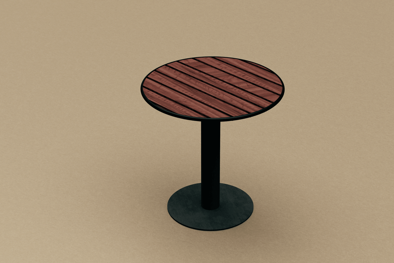 • 8 mm thick powder-coated steel plate top  with Radial-cut FSC teak/oak slats. Optional WPC with wood-grain finish
